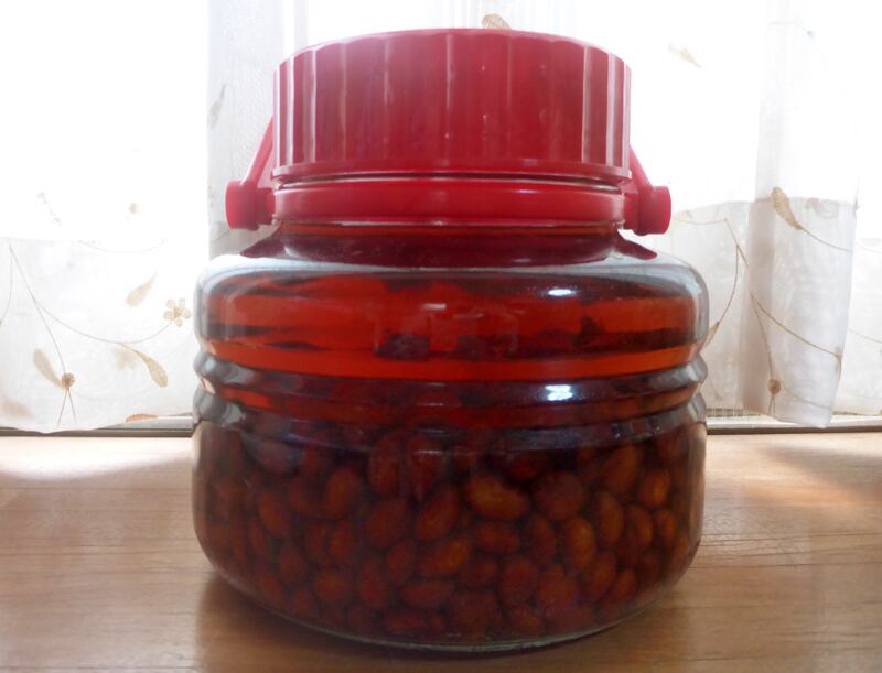滅菌消毒した瓶にびっしり押し詰めたところに、ホワイトリカーをたっぷり注ぎ